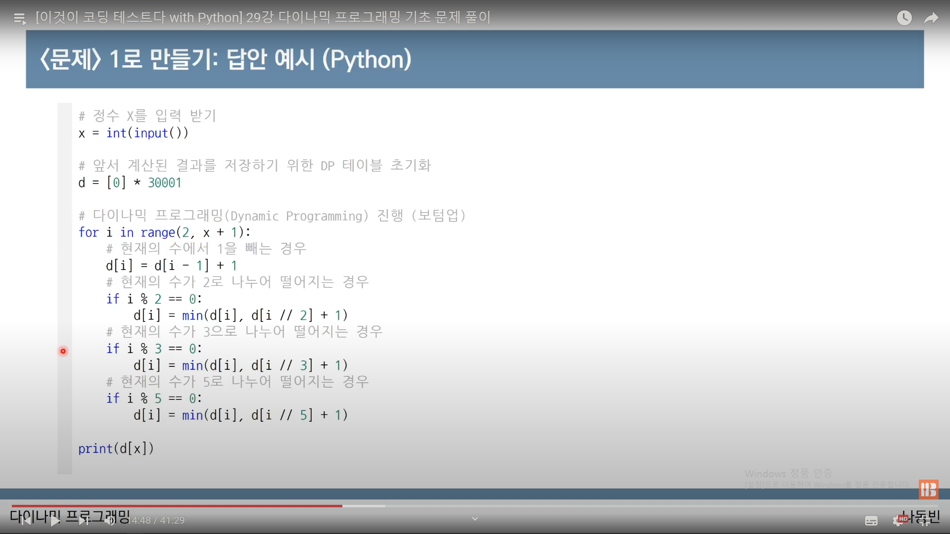 - 위에서 d[i]에 d[i-1], d[i//2] ,... 등에 1을 더하는건 그 1을 뺴거나 2,3,5로 나누는 연산을 하는 횟수를 포함시킨다는 뜻.